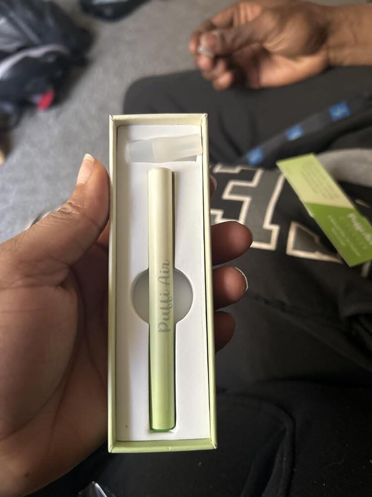 It’s a slim, pen-shaped aroma diffuser designed to support people who want to cut down or quit smoking. Instead of nicotine and smoke, it delivers a gentle herbal vapor with minty, plant-based notes.