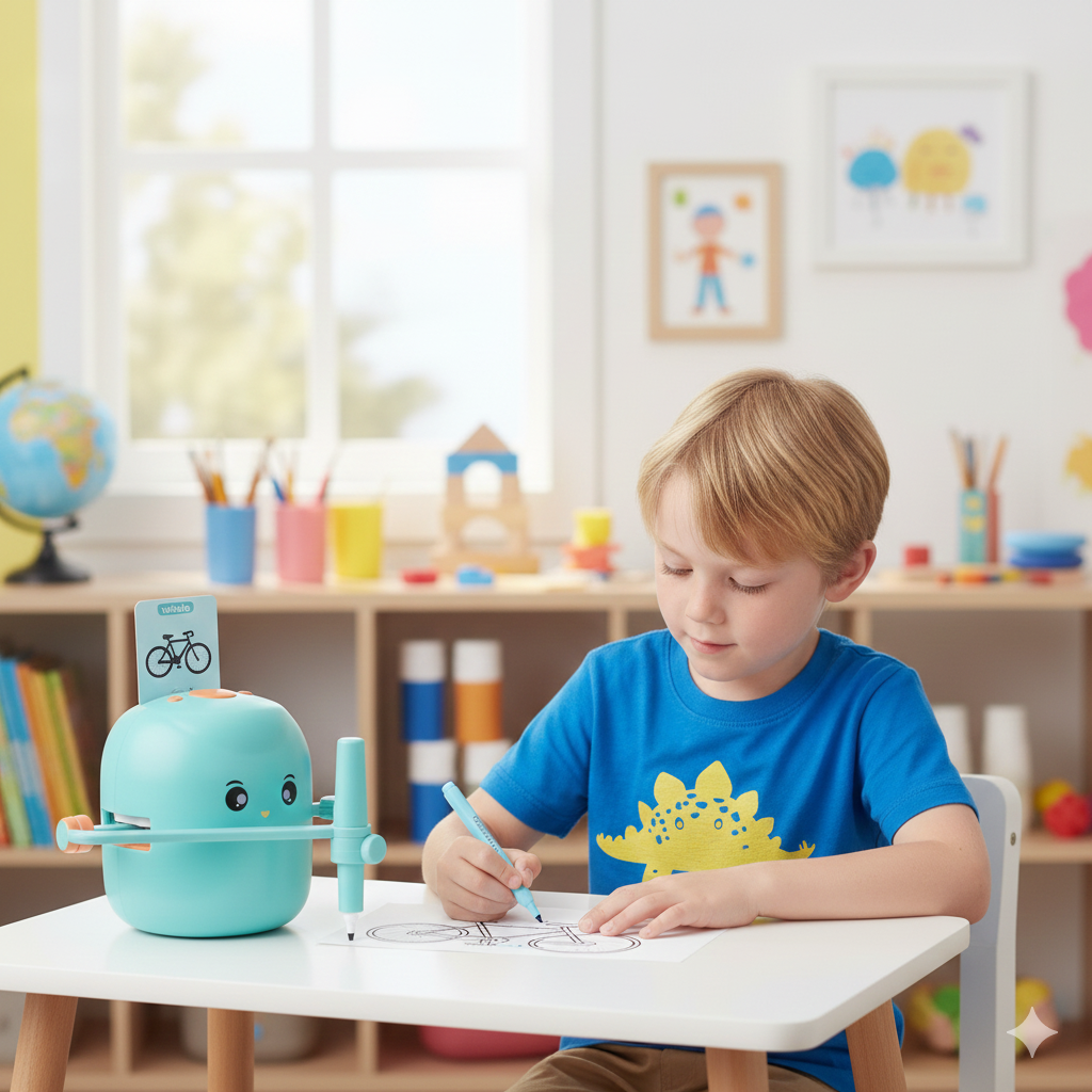 The robot keeps children engaged, focused and proud of their drawings. Perfect for quiet playtime, homework breaks or creative afternoons at home.