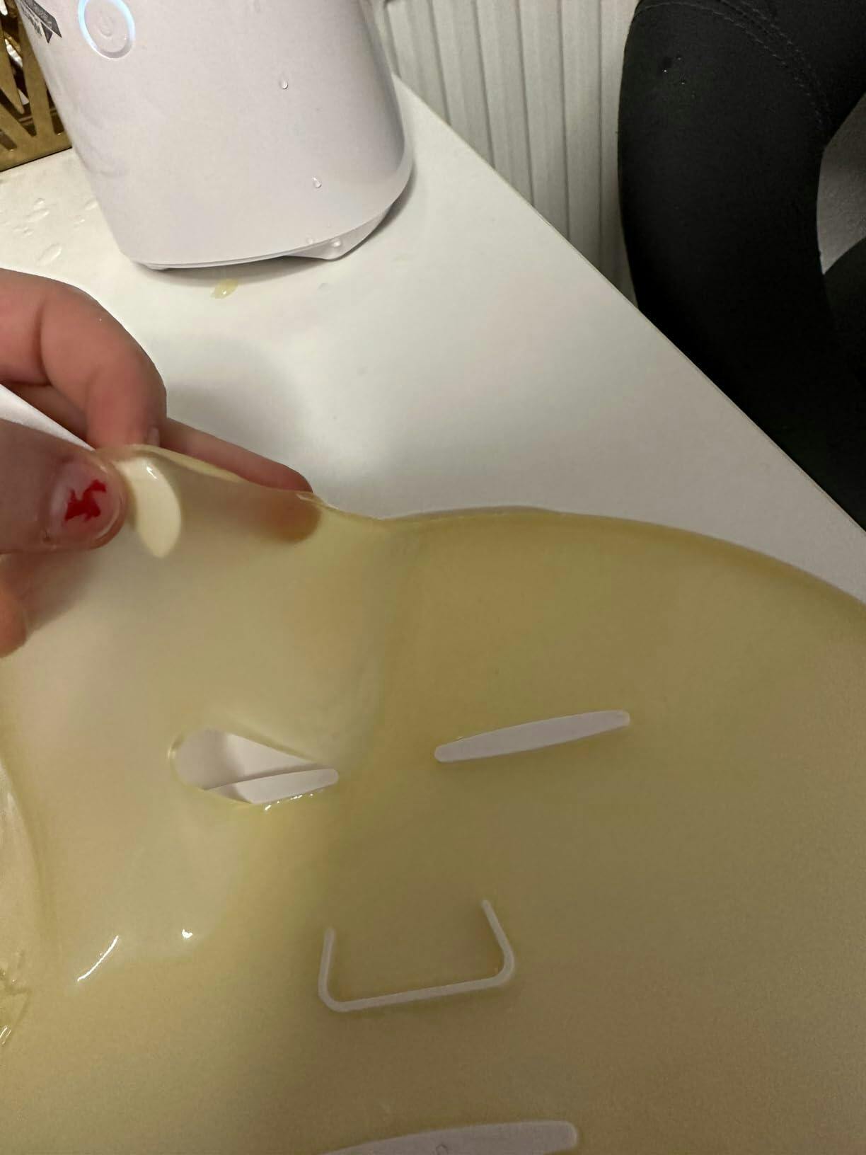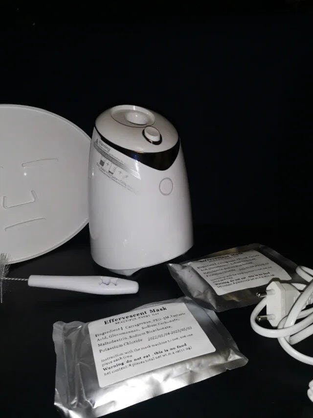 It’s a home skincare device that creates fresh, personalized facial masks using natural ingredients and collagen sheets.